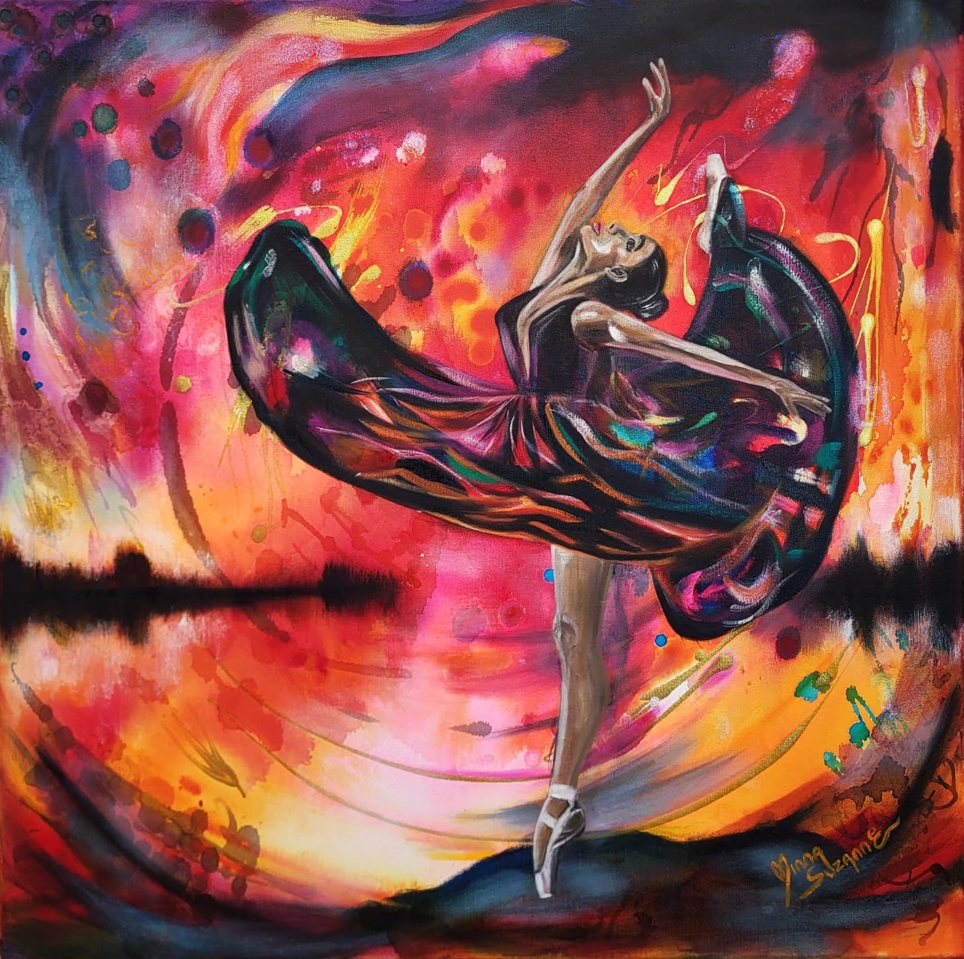 Rohkea sydän on voiman ja rohkeuden teos. Se on 70cm x 70cm x 3,8cm puuvillacanvakselle sekatekniikalla sekä öljyvärein maalattu värien loistokas ilottelu.