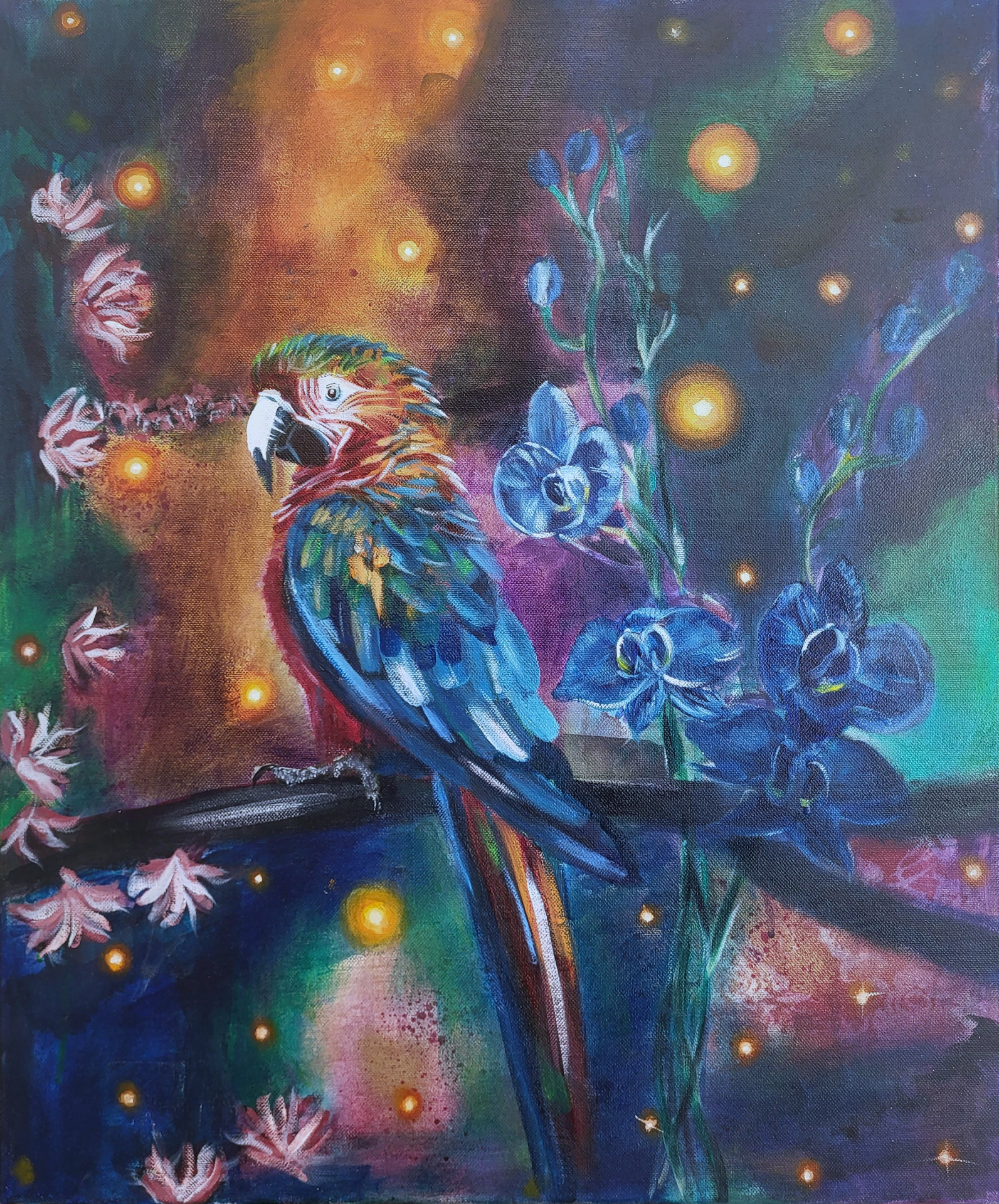 Koko A4. Ihana tunnelmallinen taideprintti. Teoksen teema liittyy viisauteen, nokkeluuteen, pitkään ikään ja sosiaalisuuteen.